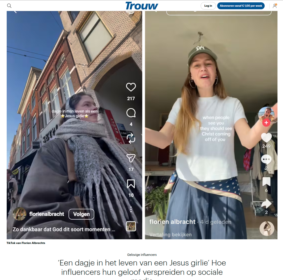 Een dagje in het leven van een Jesus girlie Hoe influencers hun geloof verspreiden op sociale media, Trouw, april 2026.